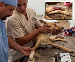 We took several photos of Charly’s injury and rushed back to our clinic site to show our vet team: Poly, Antonio and Hector. They all concurred that it was likely that the leg could not be saved. The surgery to amputate was scheduled for the next afternoon. (Keep in mind that the vets were scheduling this leg amputation after they would be working straight through from 9am-2pm completing 25 sterilization surgeries.) These men are nothing short of Heroic.